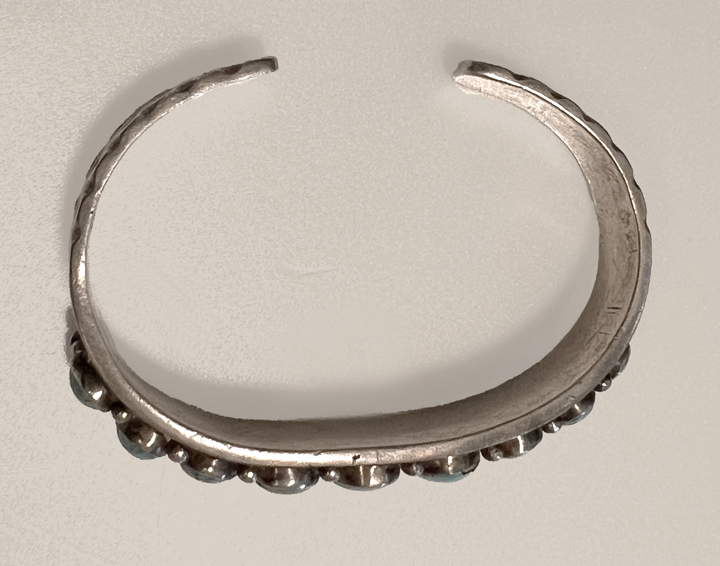 Navajo Ingot Silver and Turquoise Row Bracelet c.1920