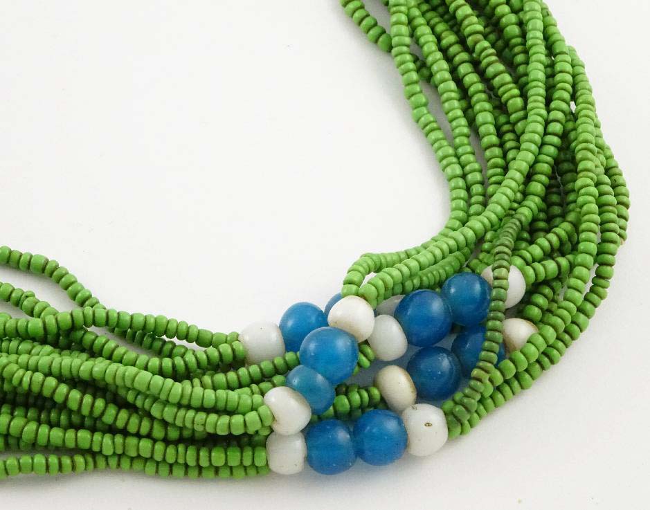 MULTISTRAND GREEN GLASS TRADE BEAD NECKLACE