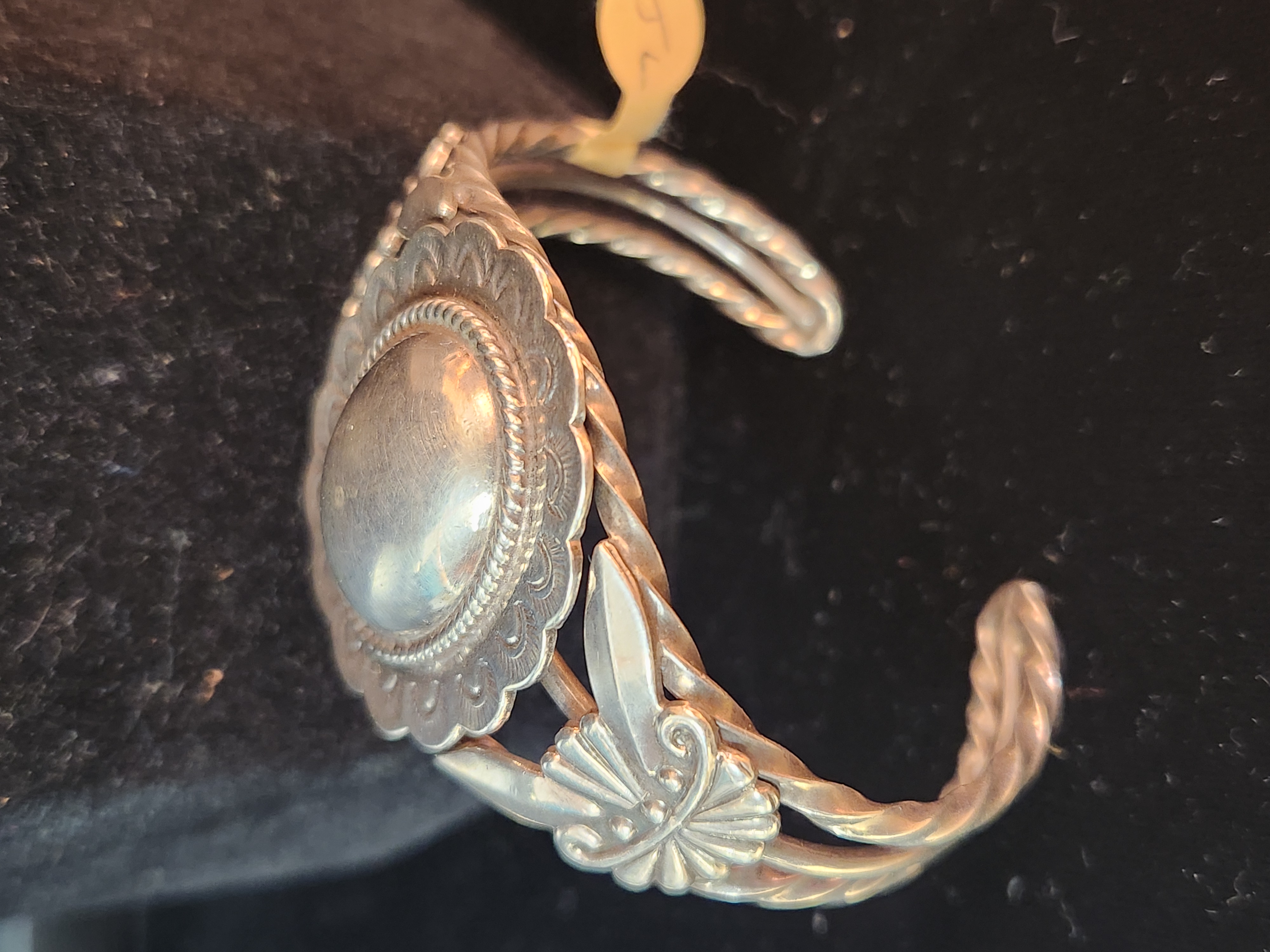 All silver "Concha" bracelet with twisted silve bands.