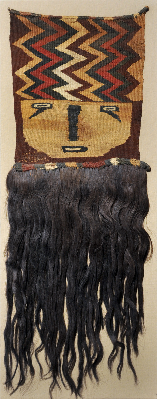 Exceptional woven burial mask with dynamic color and beard of human hair!