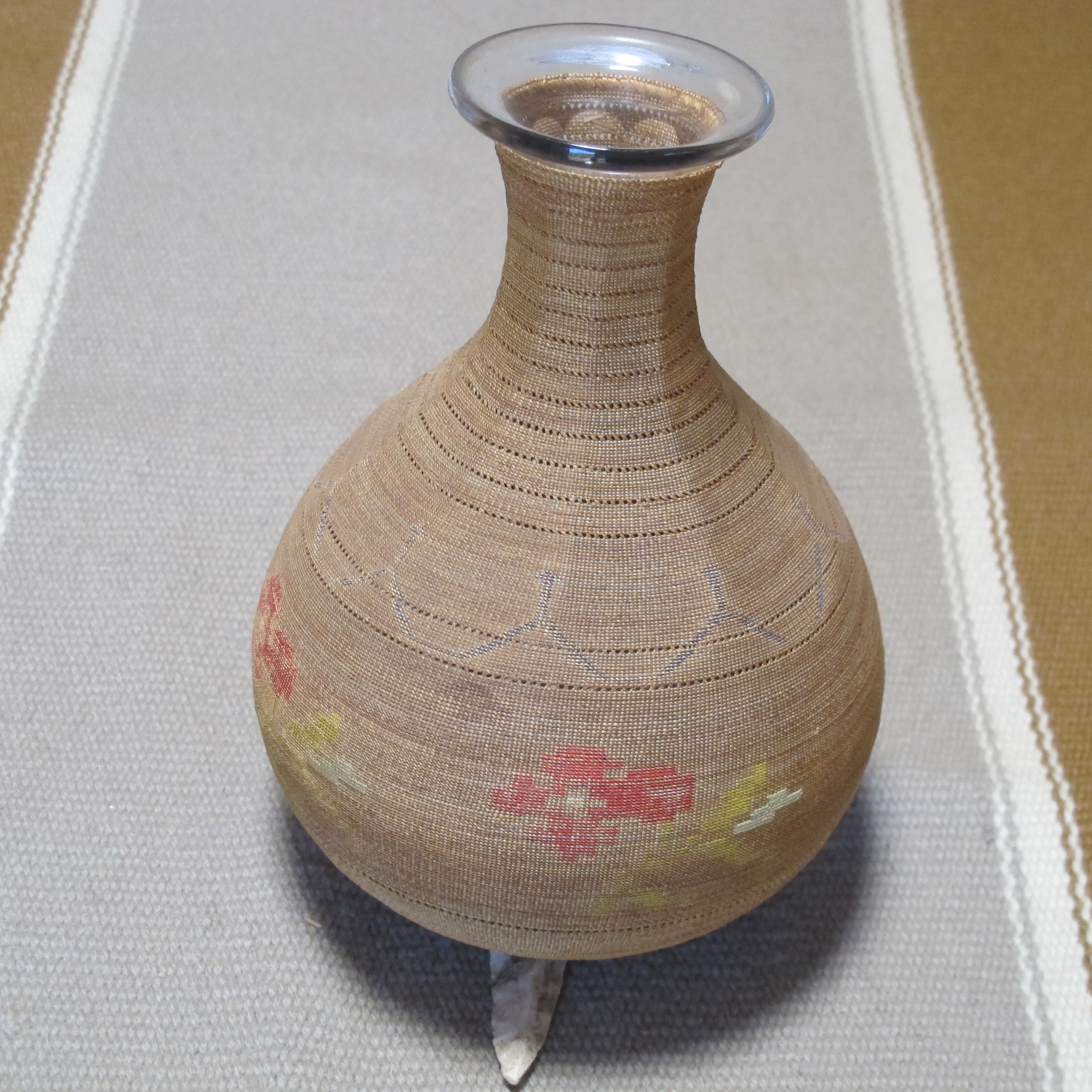 Extremely fine grass and silk woven bottle. z-9