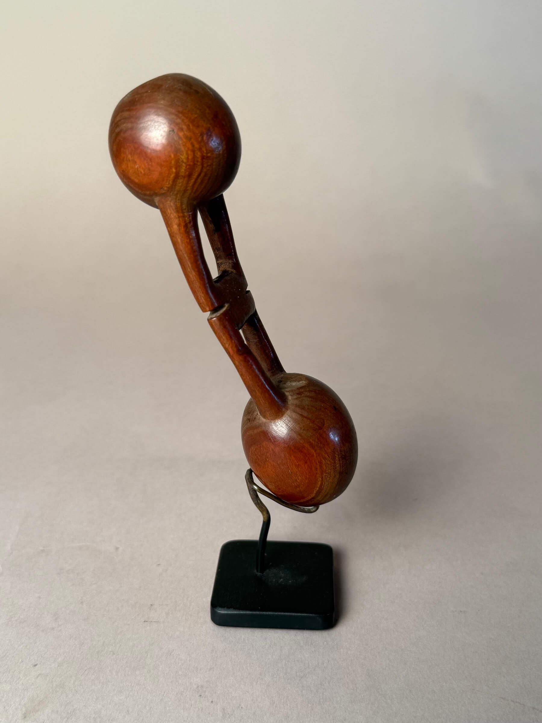 Left: Late 19th century Snuff container from the Tsonga people. I've only seen one other of this rare type-in London in the 1980s. It relates to bulbous snuff containers connected by a carved wooden chain, by the Tsonga people, living in the NW Transvaal. $900 5" length