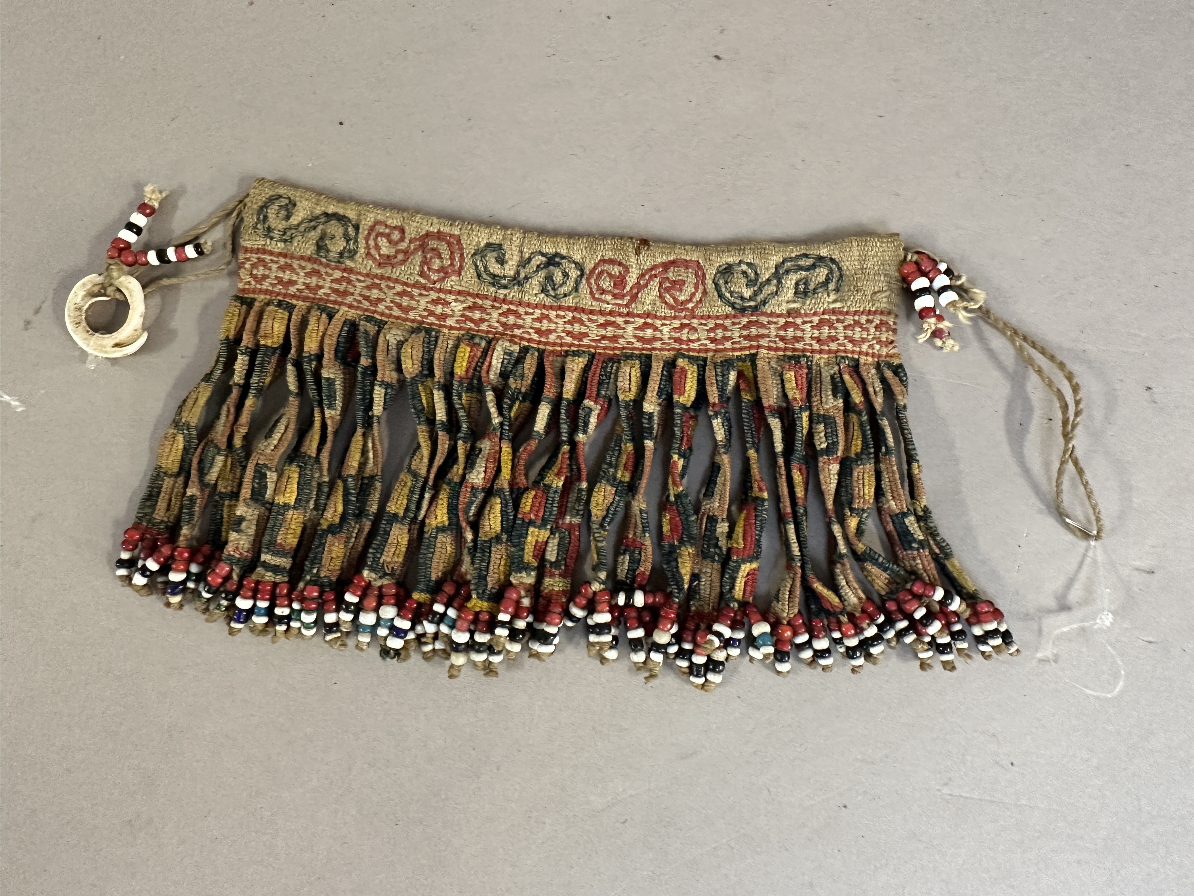 Cotton arm ornament from warrior. Timor. With slit pendants and glass beads. 1st half 20th century. Collection Aldo & Hannie van Eyck. Ex. Willem Zwiep.
