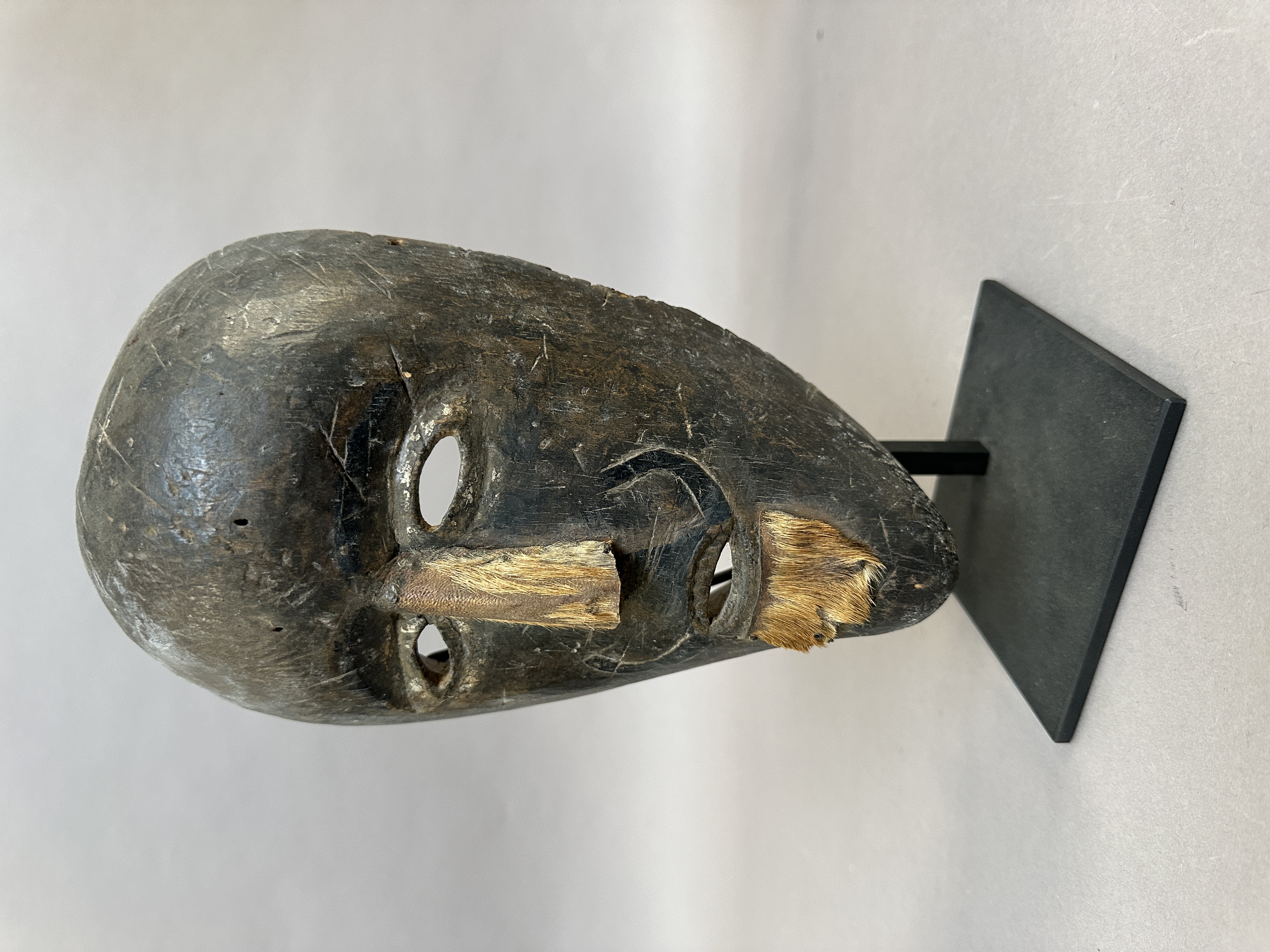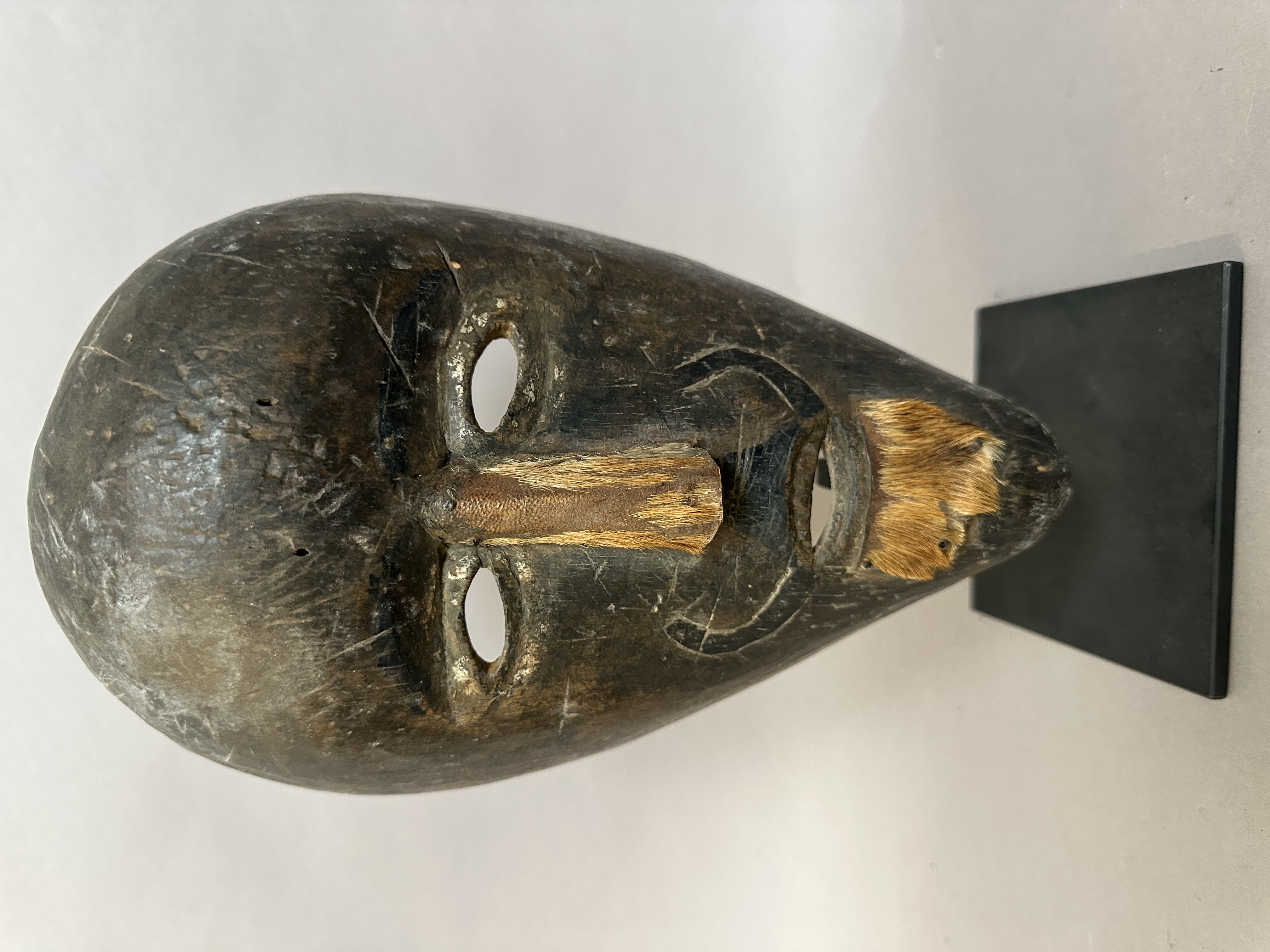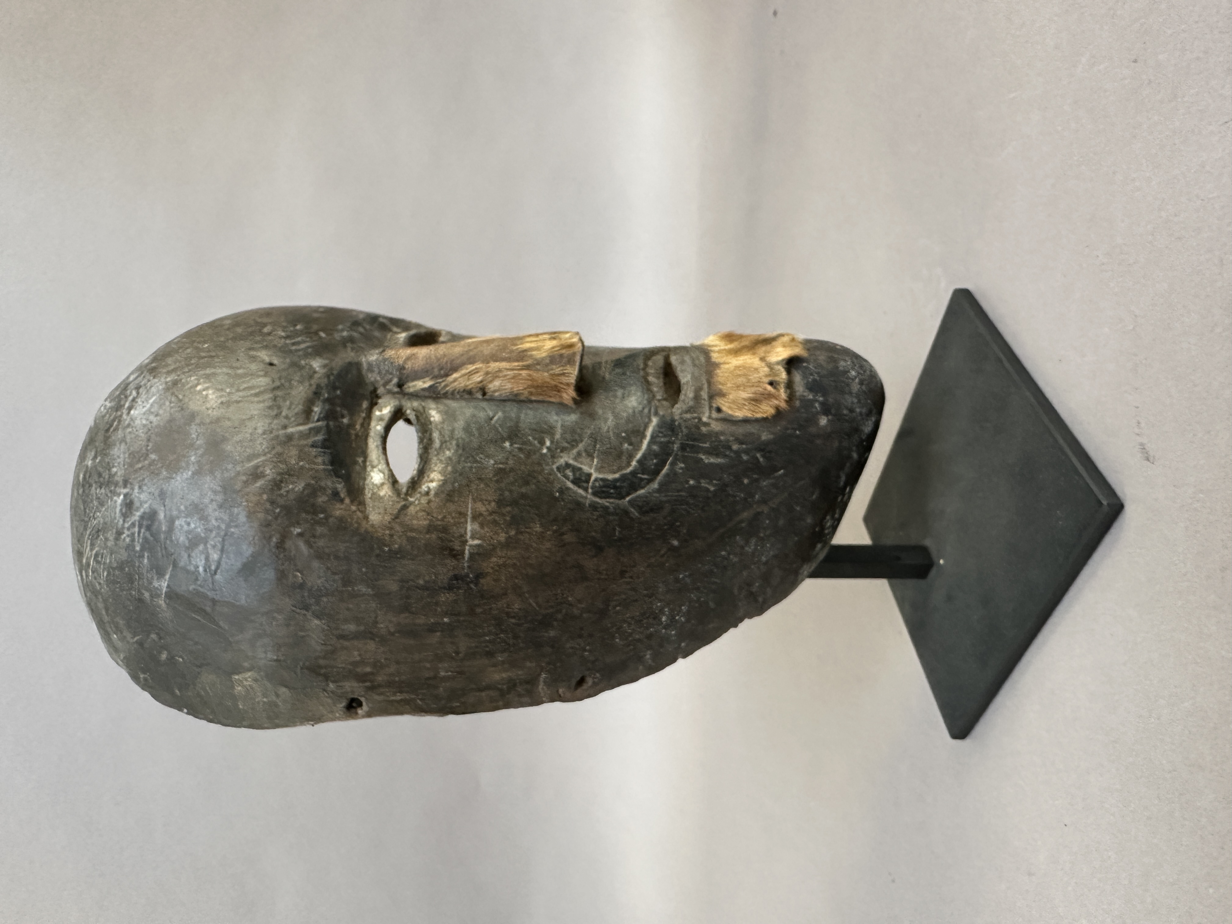 Rare Dayak mask from Ketunggau, West Kalimantan, Borneo. Wood and animal skin. (28cm) Early 20th century. Ex. US collection. Former private collection.