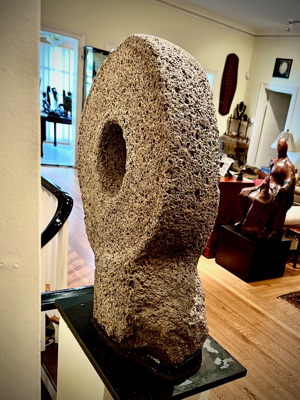 Large stone hoop used in the ancient ball game, played throughout the Americas before Columbus. At least 2,000 remains of ball courts have been discovered in the Pre-Columbian Americas. This rare and monumental piece is being offered here only to a buyer who will donate it or bequeath it to a museum.