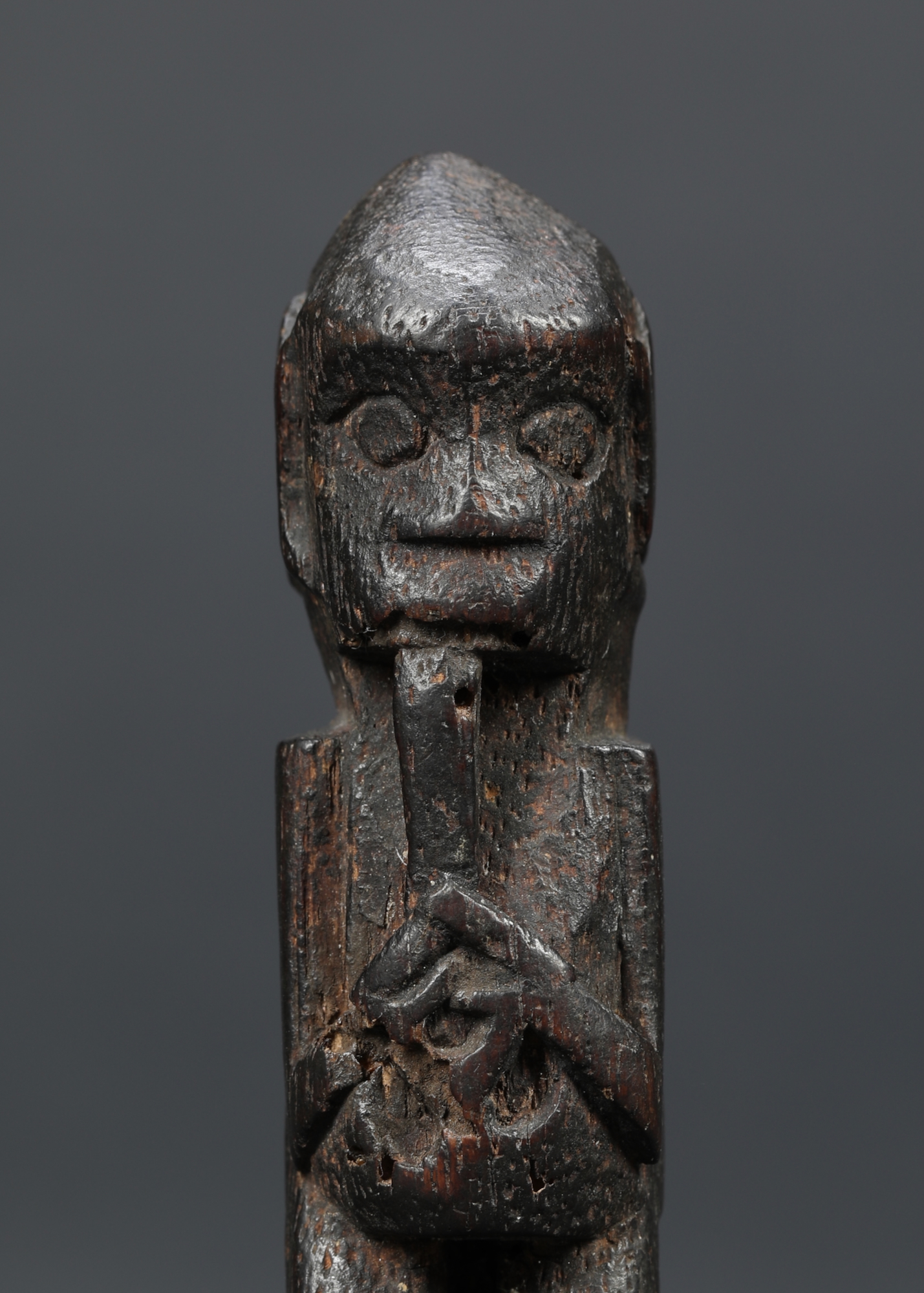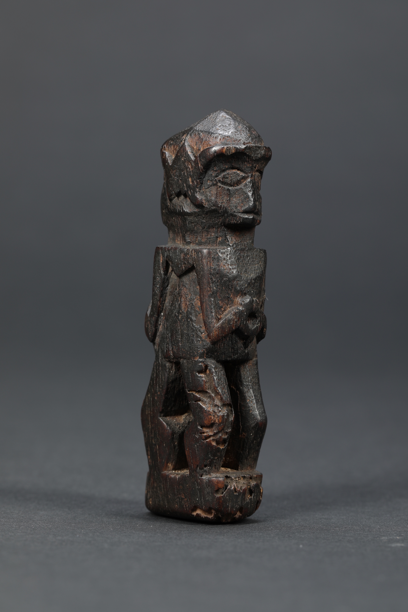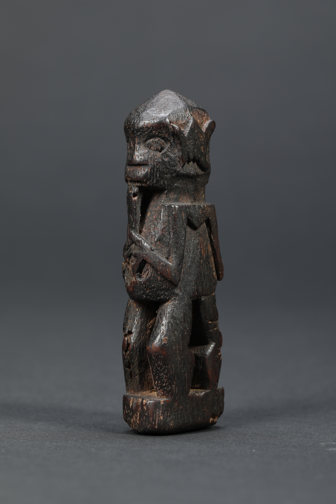 A fine small Dayak charm of janus figures, probably male and female back to back. Finely carved with a good dark patina from age and use.