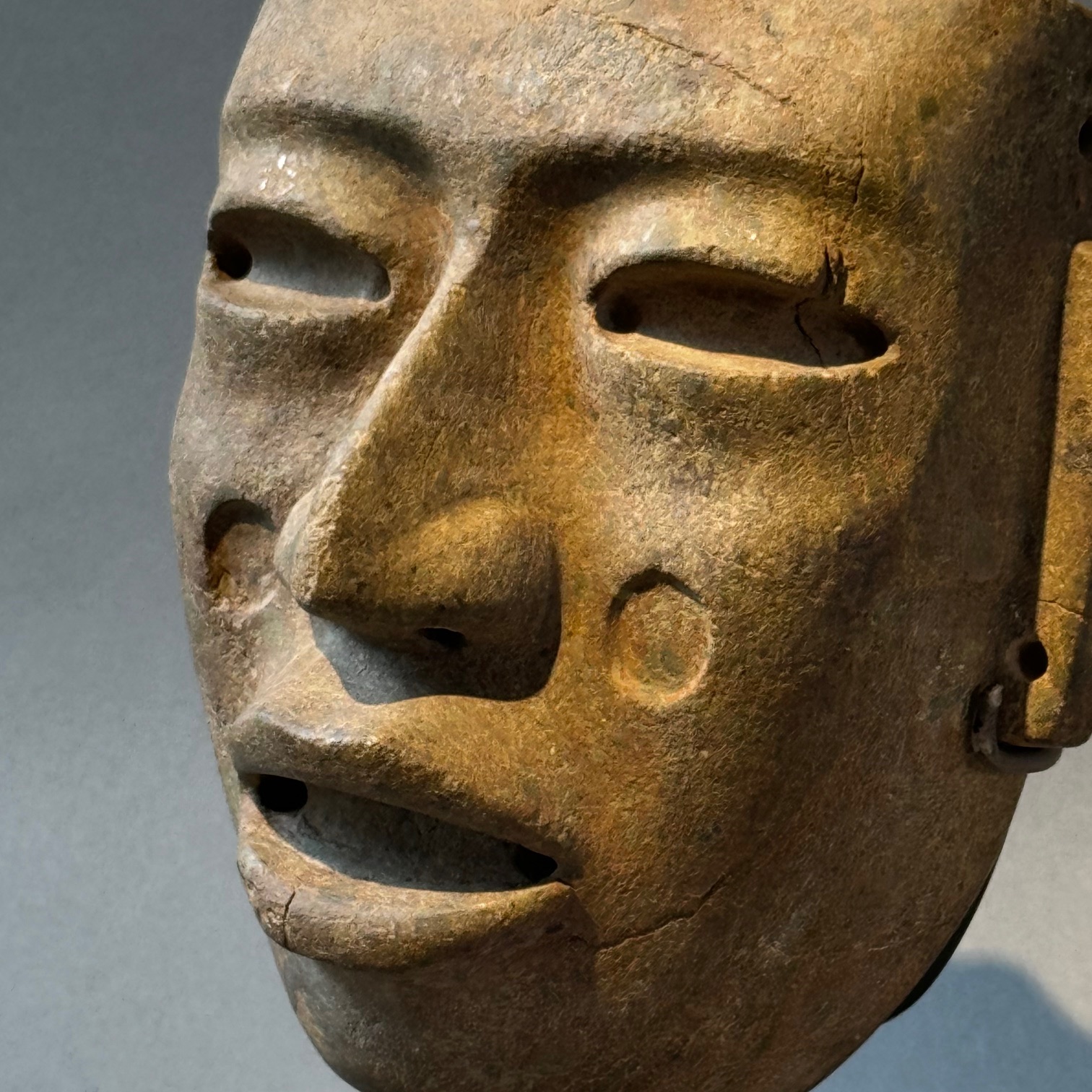 Major burial mask carved of gray stone