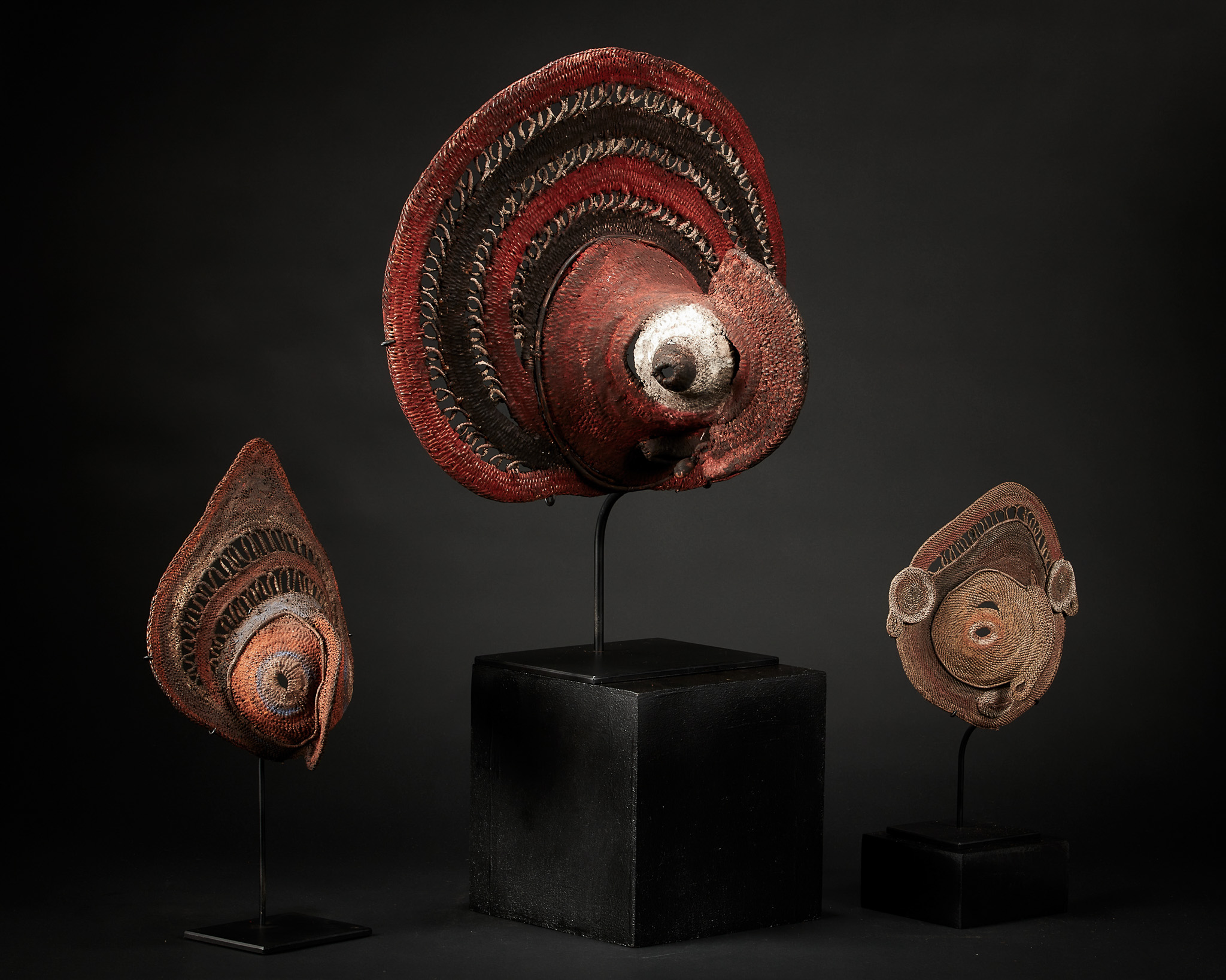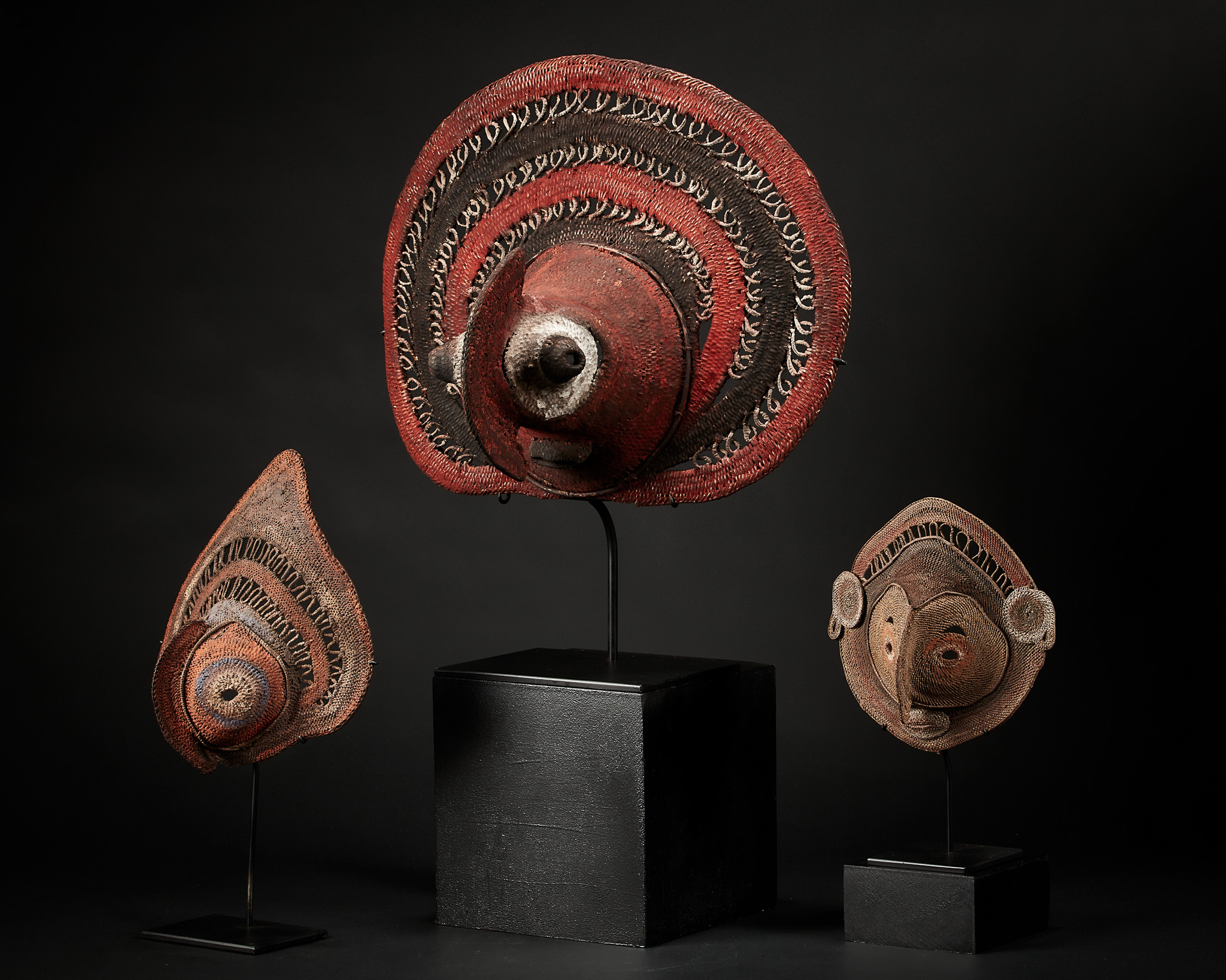 Three Yam Masks, babamini, Abelam people, East Sepik, Papua New Guinea