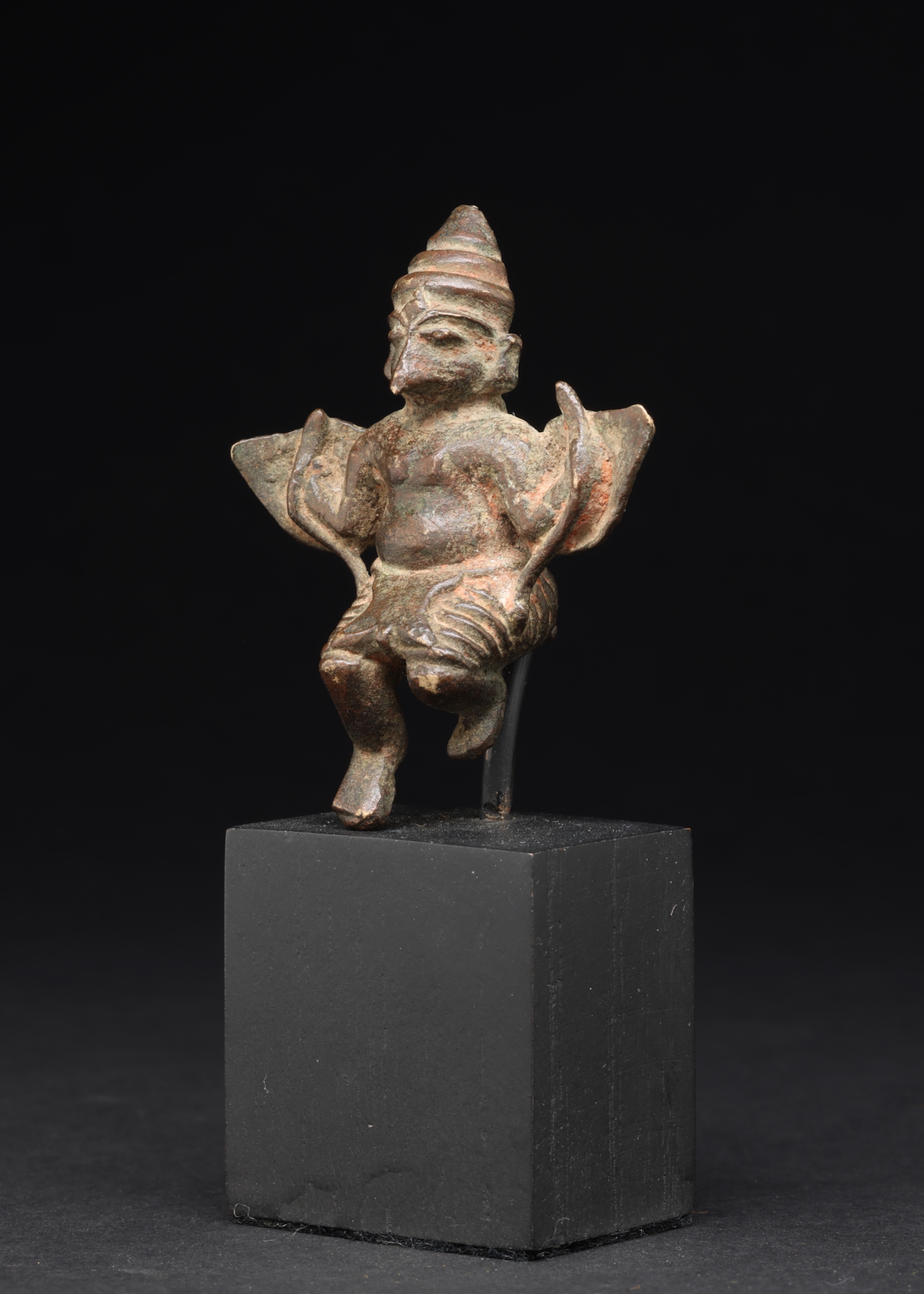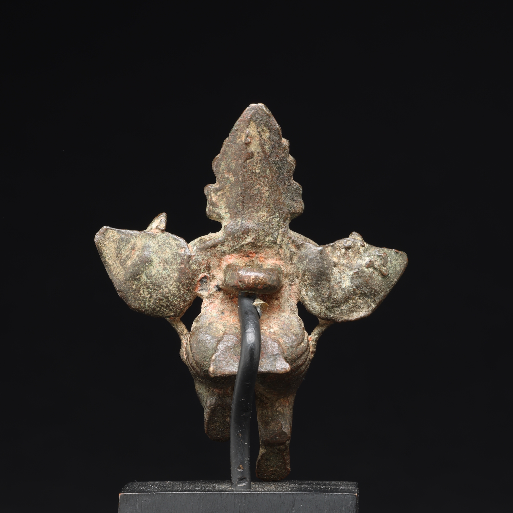 An unusual small Bronze Garuda figure. There is a loop on the back that most likely attached this piece to a larger alter with other figures. The patina is good from age and use.