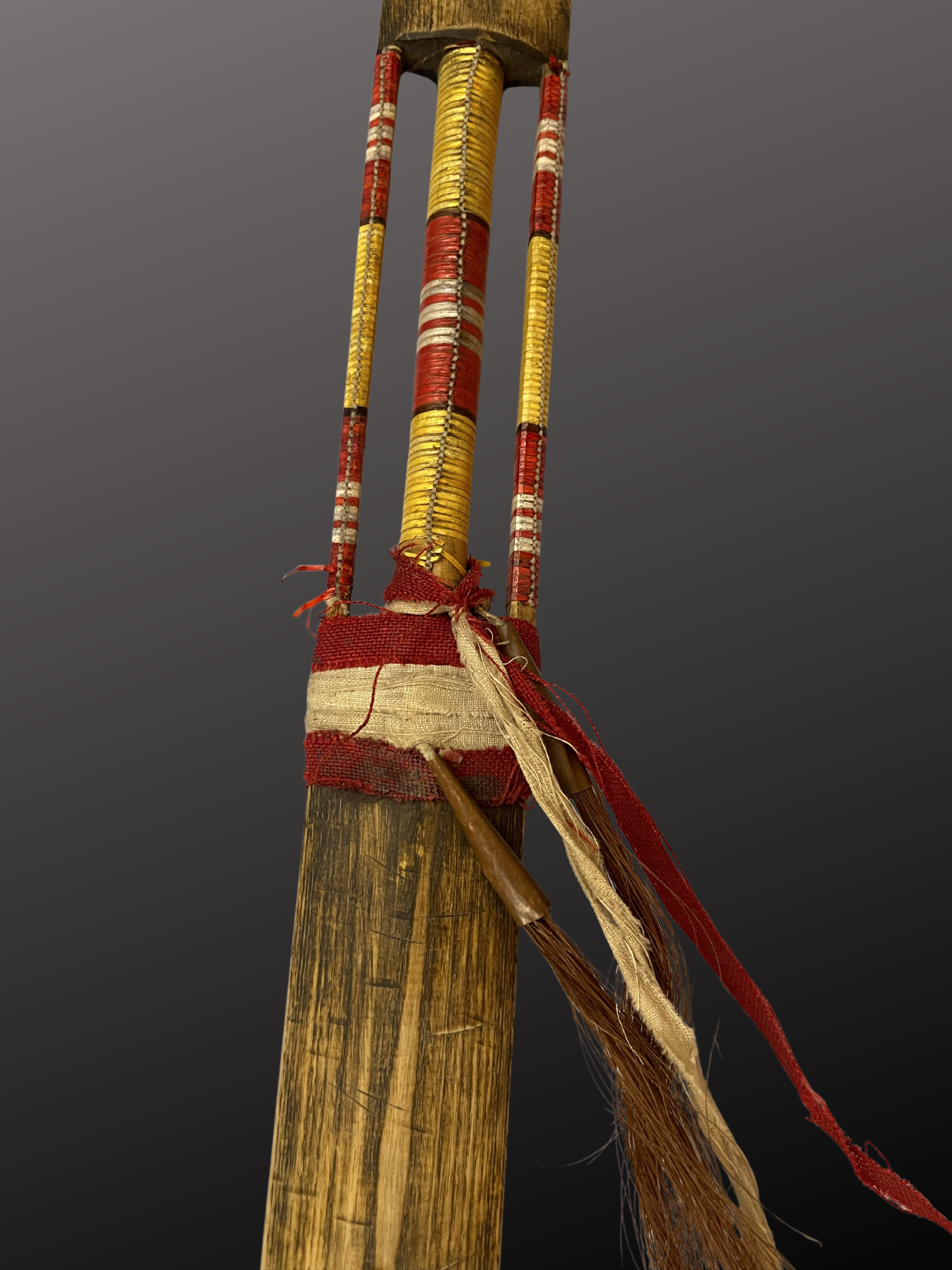 Wood, porcupine quill, catlinite, copper sheet, horse hair, cloth.