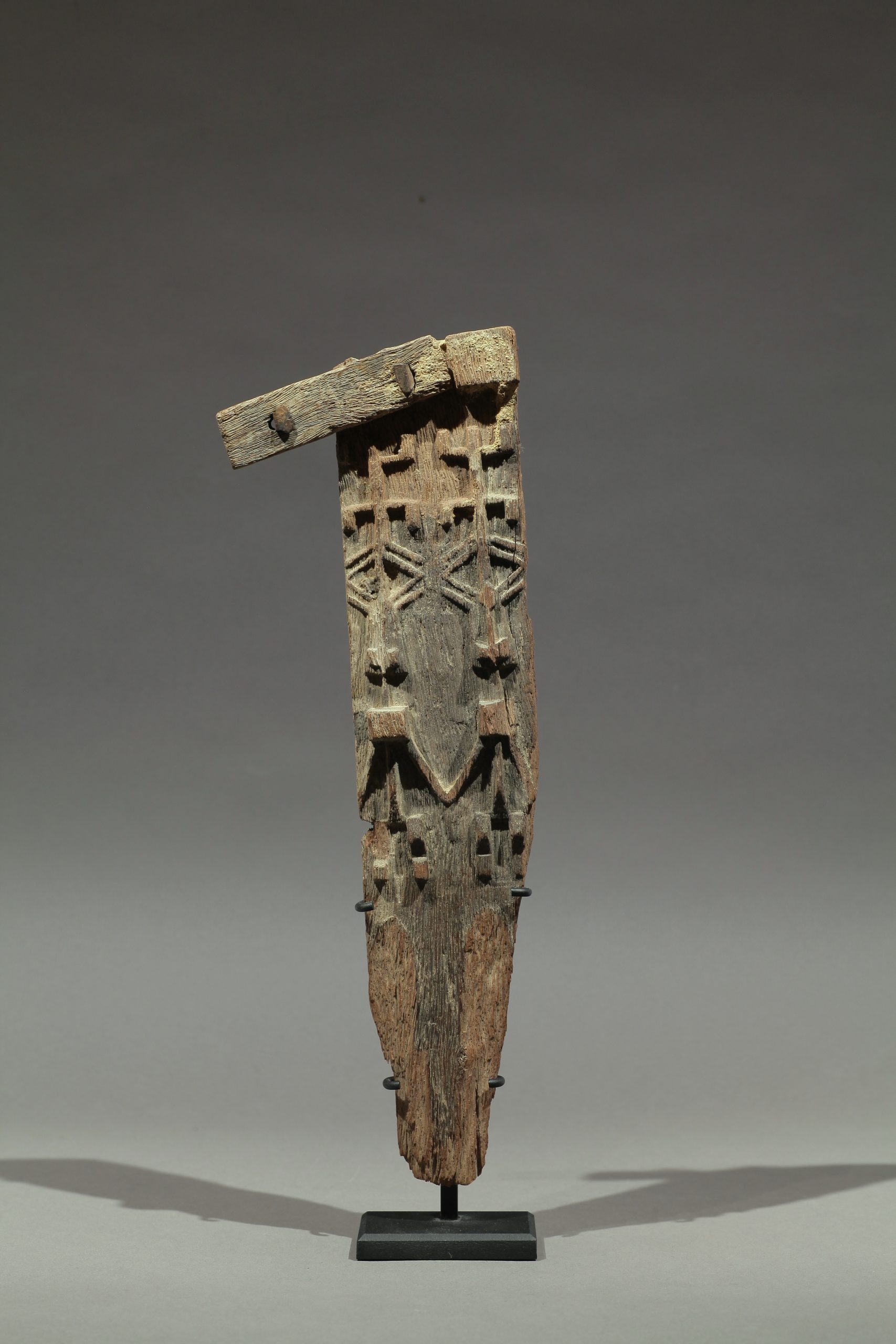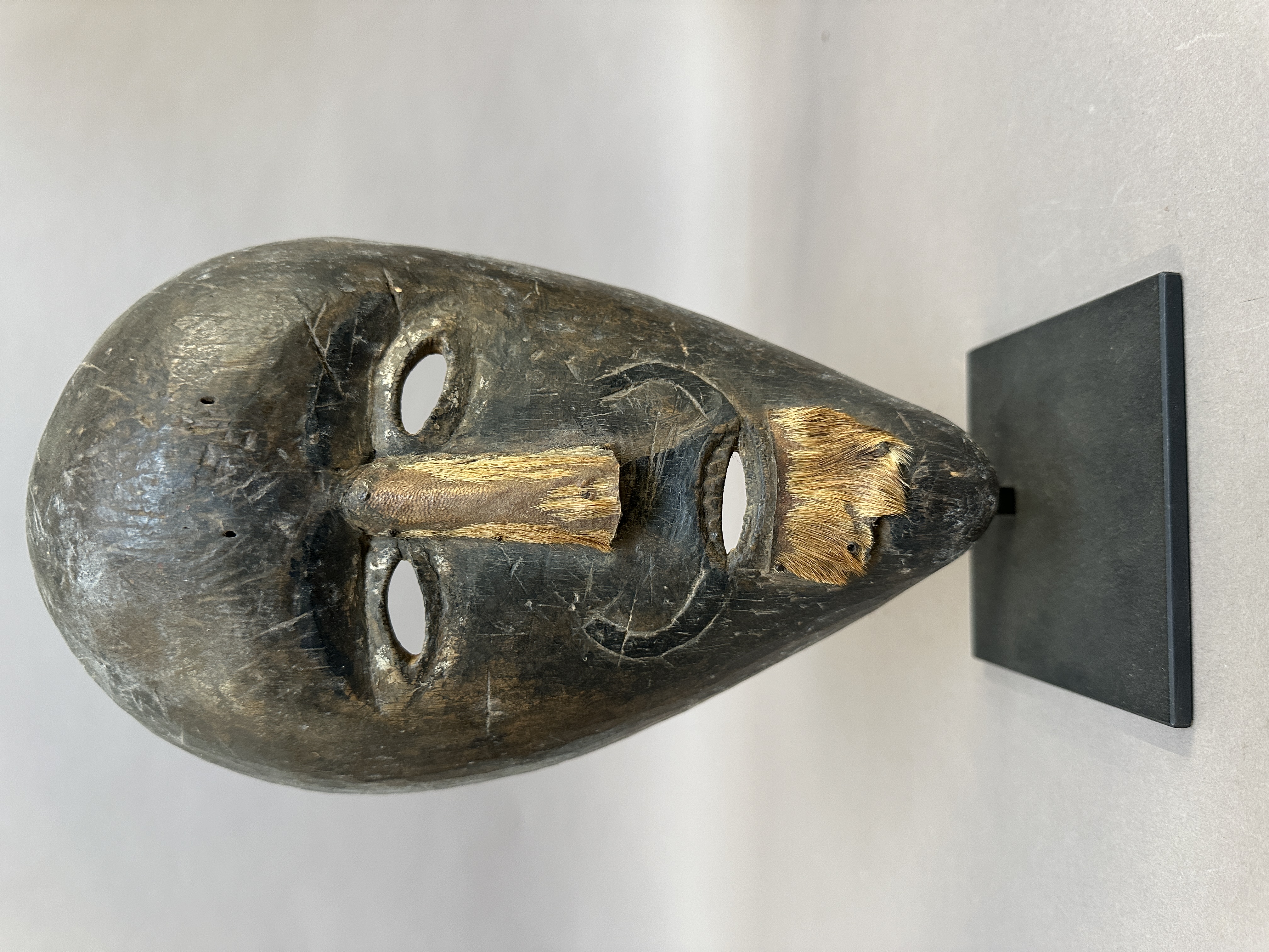 added. At most manipulated. A wooden sculpture or mask is already present in the